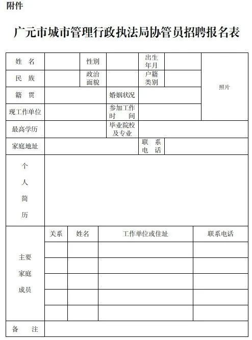 1.城管協(xié)管員招聘報(bào)名表(見附件,需粘貼照片);