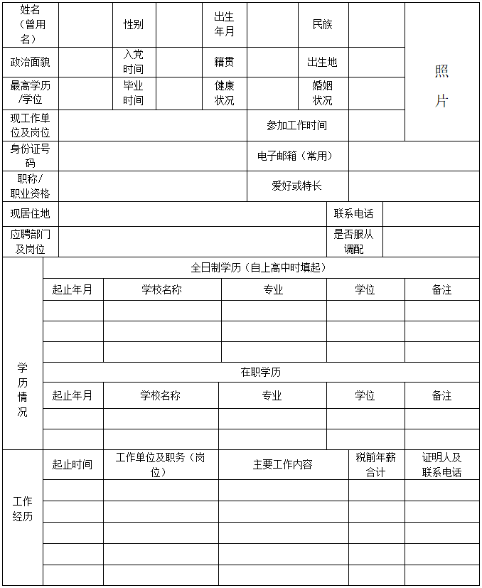 2.應(yīng)聘者下載填寫《四川省水電投資經(jīng)營(yíng)集團(tuán)普格電力有限公司應(yīng)聘人員報(bào)名登記表》(附件2),同時(shí)還需提供如下資料: