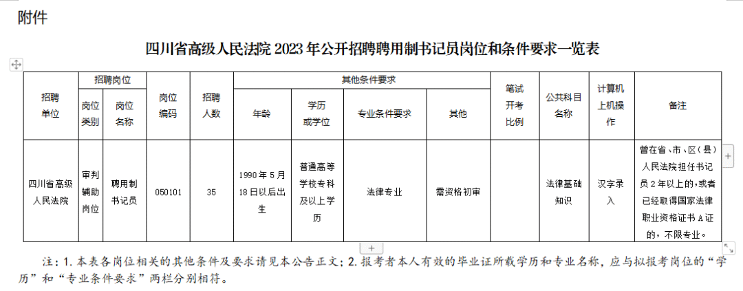 5.普通高等學(xué)校??萍耙陨蠈W(xué)歷、法律專業(yè)并已取得相應(yīng)畢業(yè)證書(具有本科及以上學(xué)歷的還需取得相應(yīng)學(xué)位證書);曾在省、市、區(qū)(縣)人民法院擔(dān)任書記員2年以上的,或者已經(jīng)取得國(guó)家法律職業(yè)資格證書a證的,不限專業(yè);