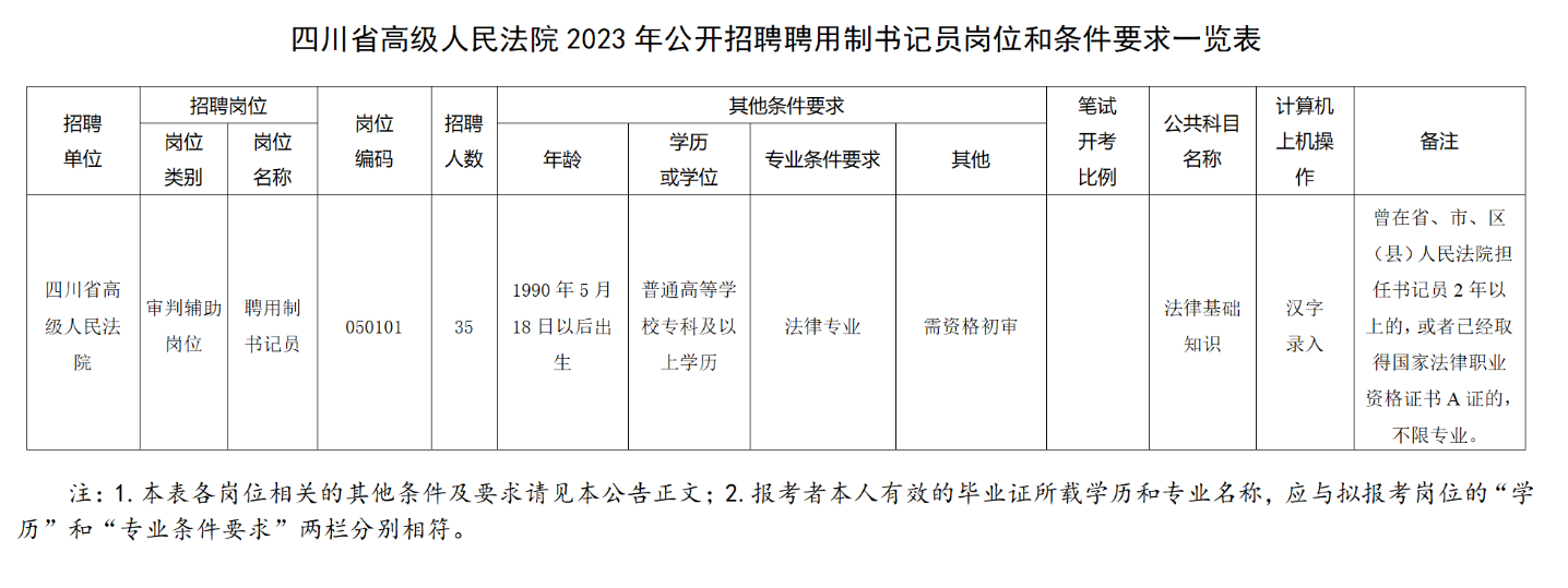 原標(biāo)題:四川省高級人民法院2023年公開招聘聘用制書記員啦!
