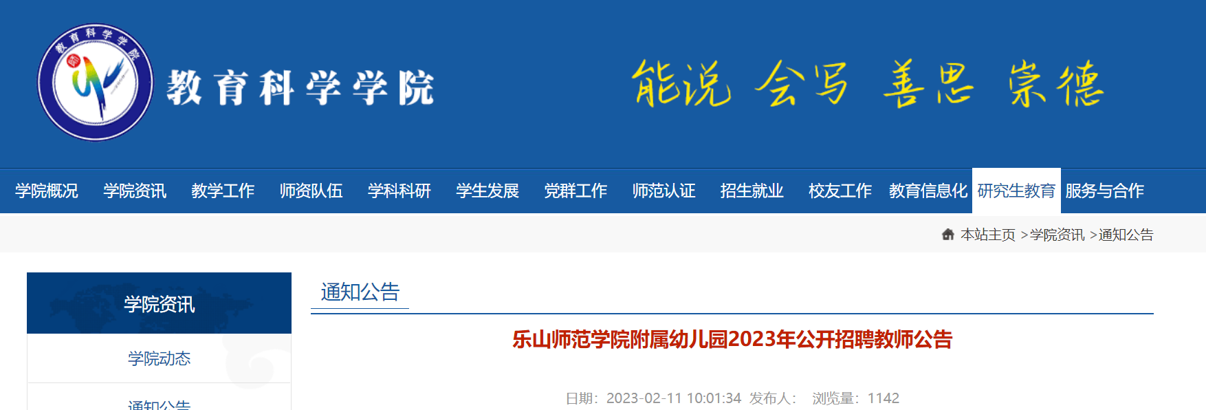 原文標題:樂山師范學院附屬幼兒園2023年公開招聘教師公告